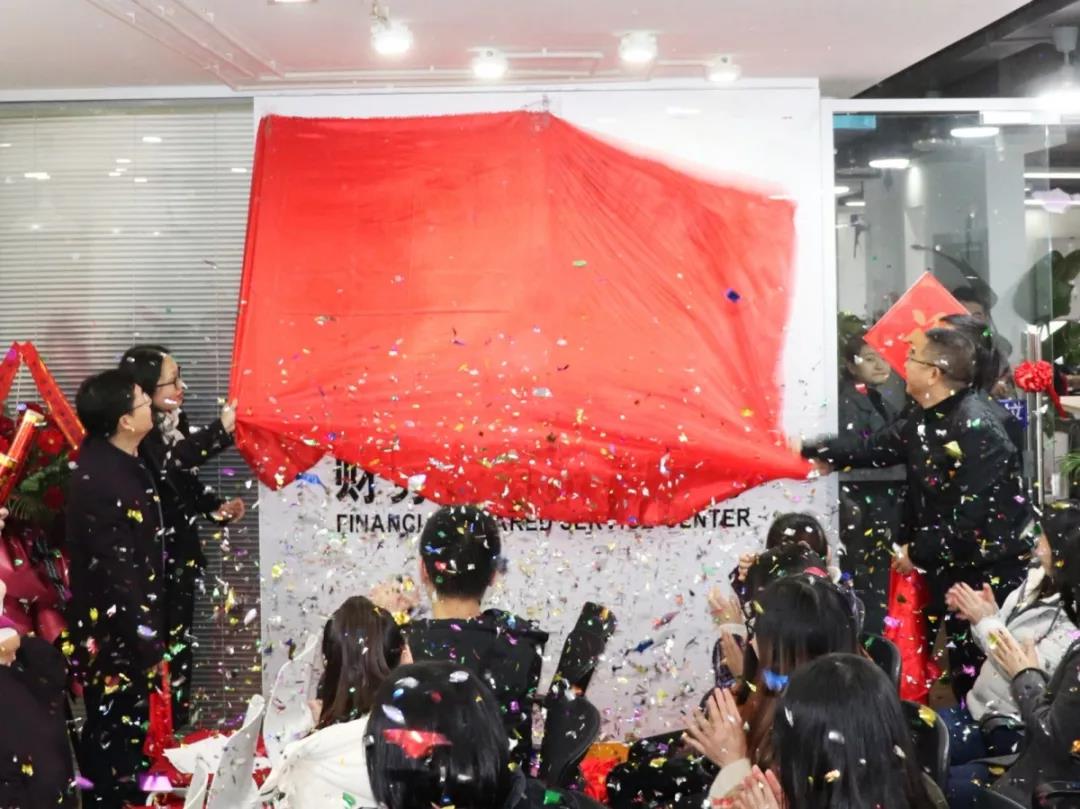 上午9时08分,蔡总、杨总会计师、邵总、车司理4人配合拉动红绸,为财务共享服务中心授牌,一同见证这一主要时刻。授牌仪式现场响起热烈掌声。