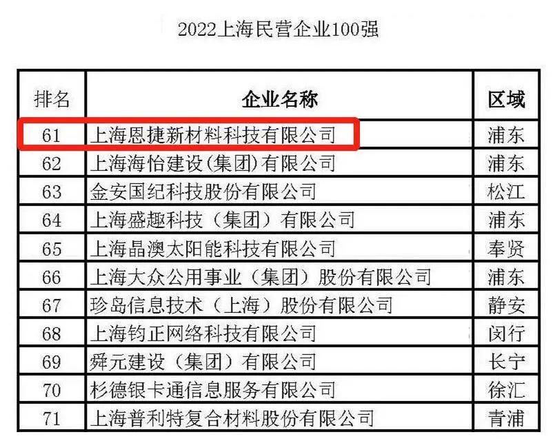 2022上海民营企业100强第61名