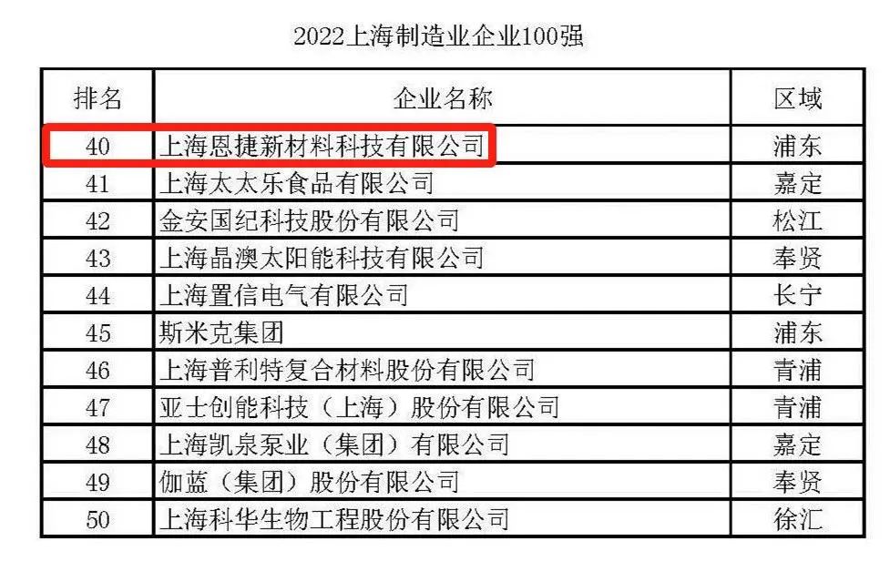 2022上海制造业企业100强第40名