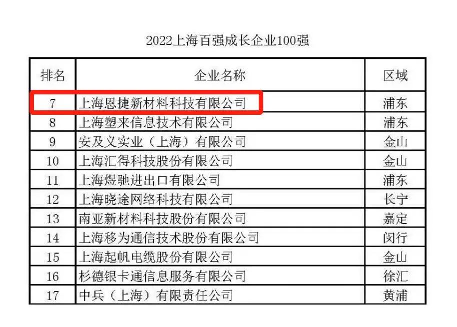 2022上海百强生长企业100强第7名